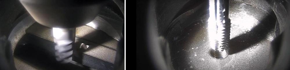 That hole also must be free of debris. As Bohlen explained, “Let’s say the laser cut a hole, yet for whatever reason, the slug didn’t fall out. That creates a possible collision. So, we might have to run a drill through it first to make sure the slug is gone before we tap. The camera will identify that issue.” Bohlen paused, then pointed to a monitor in the FABTECH booth showing the tapping tool in action. “The key to it all really is that camera.”